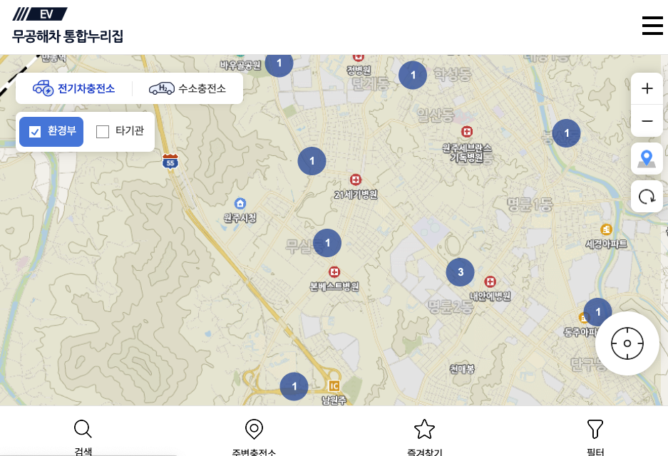 무공해차 통합누리집 웹사이트를 통해서도 전기차 충전소를 쉽게 찾아볼 수 있습니다. 전기차 충전소의 커넥터 타입과 충전소 운영기관별 상세 검색도 해볼 수 있습니다.
