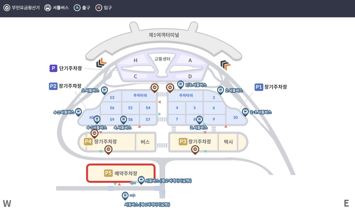 인천공항 제1,2 여객터미널 주차장 안내지도