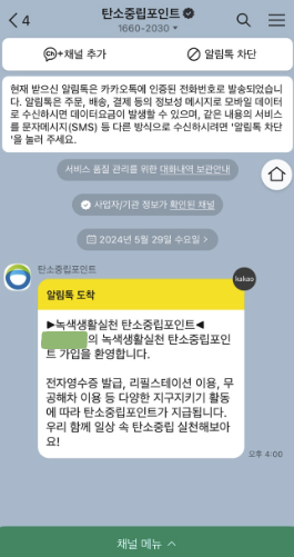 *탄소중립포인트 -300원 적립 -> 월 말 인센티브 입금