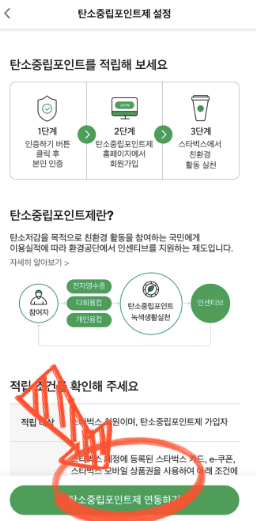 스타벅스에서 음료주문시 사이렌오더로 시키셔야 탄소중립 포인트 적용가능합니다.