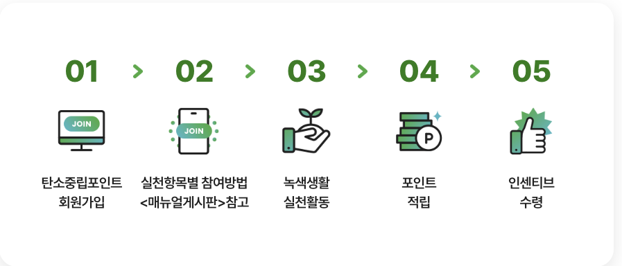 탄소중립 생활을 실천하는 문화를 확산시키기 위해서 다양한 기업에서 인센티브를 지원하는 제도입니다. 전자영수증을 발급받거나, 텀블러사용, 친환경제품 구매 등등 녹색생활 실천 활동을 하게 되면 인센티브가 매월 말 가입할 때 등록한 가입자의 계좌로 지급됩니다.