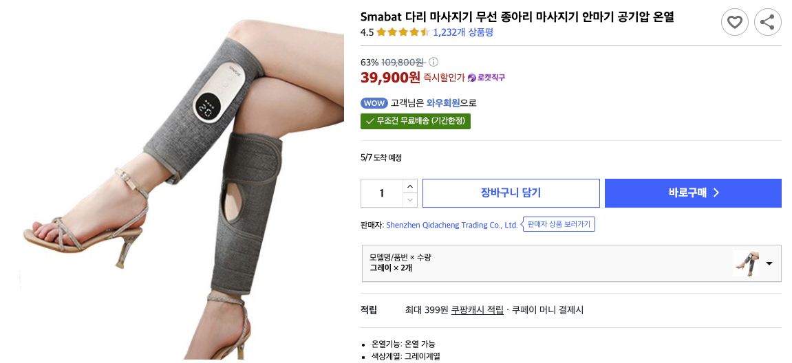 제품: smabat 다리 마사지기 무선 종아리 마사지기 안마기 공기압 온열
