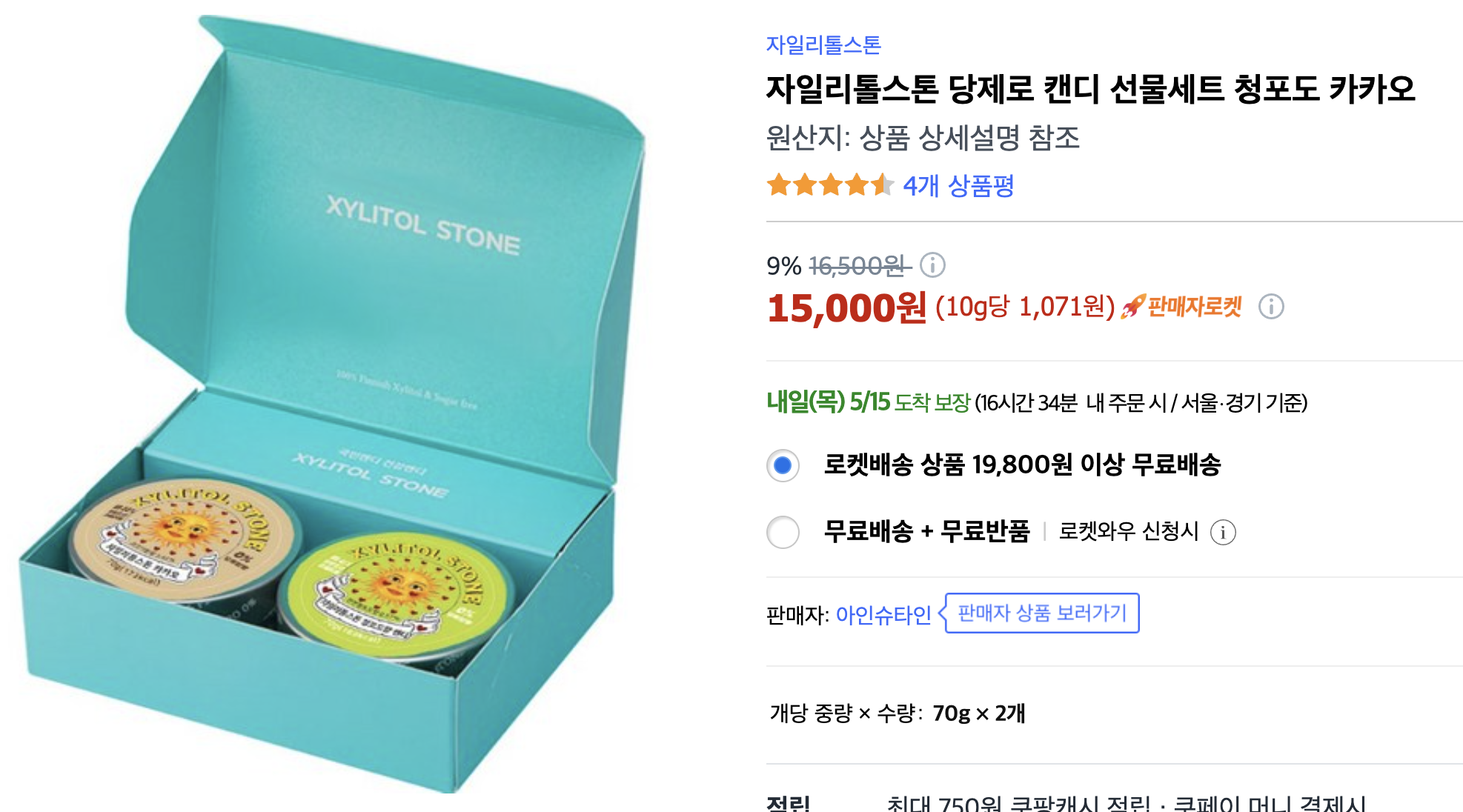 자일리톨스톤 당제로 캔디 선물세트 청포도 카카오 - 일반하드캔디 | 쿠팡