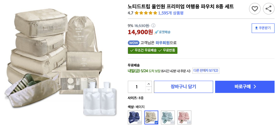 품목 : 노티드트립 올인원 프리미엄 여행용 파우치 8종세트