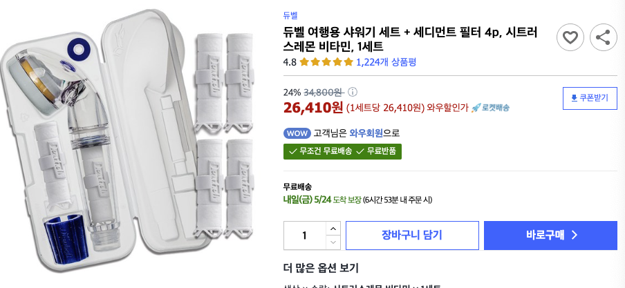 품목 : 듀벨 여행용 샤워기 세트 + 세디먼트 필터 4p, 시트러스레몬 비타민, 1세트