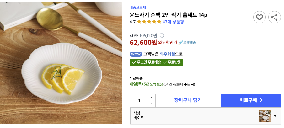제품 : 윤도자기 순백 2인 식기 홈세트 14p